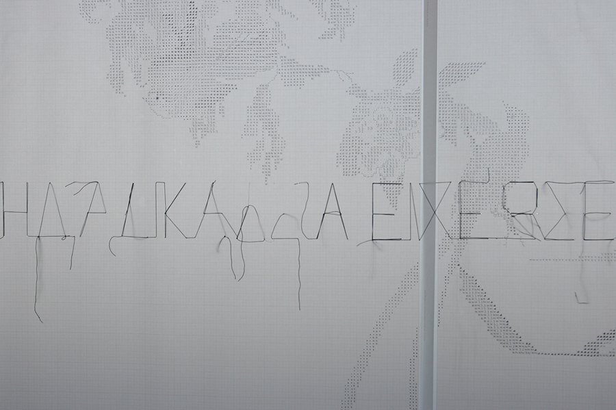 ξύλο, μιλιμετρέ χαρτί, κλωστή, μέταλλο, διαστάσεις 900x240 εκ.