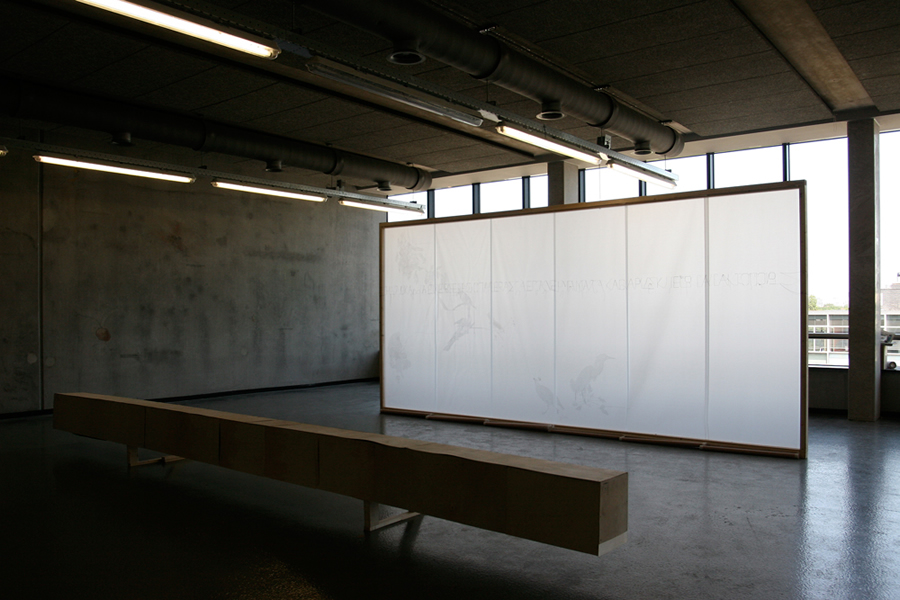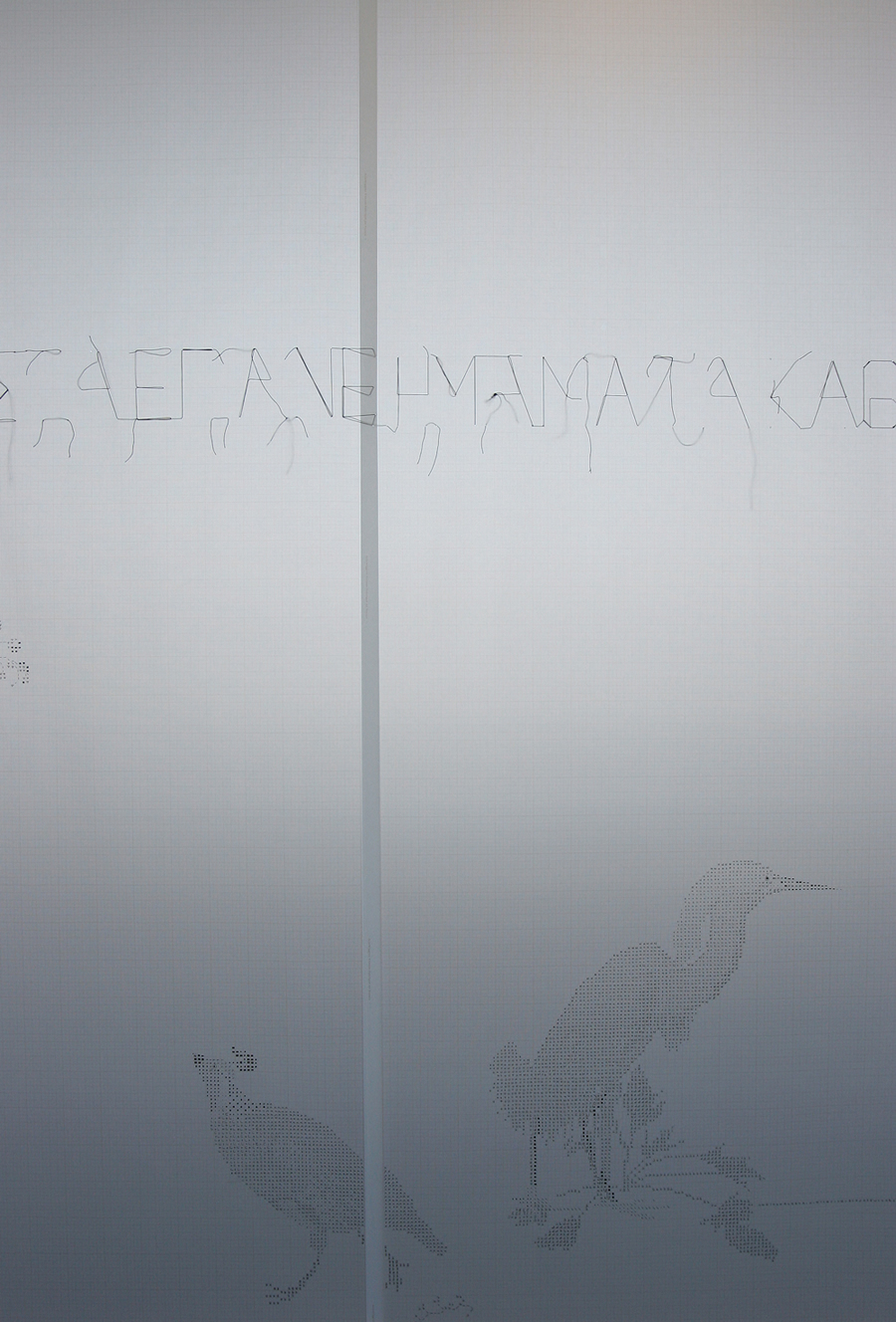 παστέλ μολύβι(α), dry-transfer κείμενο, διαστάσεις 900x240 εκ.